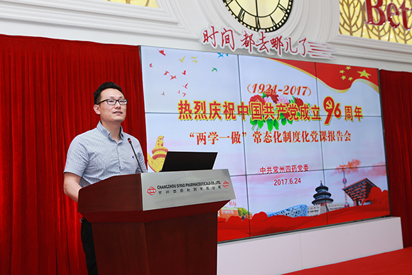 最后,公司黨委書記屠總對廣大黨員提出新的希望和要求:2017 年是實施十三五規(guī)劃的重要之年,也是推進供給側結構性改革的深化之年,穩(wěn)中有進是工作總基調 ,穩(wěn)中向好是今年工作總目標。今年下半年要召開黨的十九大,到 2020 年要實現第一個中國夢。四藥人務必負重拼搏,攻堅克難,同心協力,勵志前行,唯有一步一個腳印,實現新的突破。 四藥面臨新常態(tài),如今處在新方位。不斷落實“全面深入學習、全面健全體系、全面防控風險、全面培養(yǎng)人才”的 2017 年全年工作部署,我們要保持定力,加快形成新增長動力,穩(wěn)中求進,保持高于行業(yè)的水平,實現“十三五”穩(wěn)健發(fā)展。公司黨委認真學習貫徹黨的十八大和十八屆三中、四中、五中、六中全會精神和習近平總書記系列重要講話精神, 在上級黨委的正確指導和公司黨委的正確領導下,積極實施“聚力創(chuàng)新練內功、聚焦轉型穩(wěn)增長”的戰(zhàn)略目標。我們牢牢把握發(fā)展機遇,攻堅克難,堅持創(chuàng)新發(fā)展,保持連續(xù)性穩(wěn)定性,加快結構調整,積極市場轉型,扎實推進各項工作,實現生產經營穩(wěn)步發(fā)展在國內外嚴峻經濟形勢和醫(yī)藥行業(yè)新常態(tài)下,四藥人要負重拼搏, 努力實現 2017 年產銷超 25 億,力爭實現 10%的目標。今年 1~6 月預計完成各項經濟指標“雙過半”, 實現產銷超 12.3 億元,利稅 3.6 億元,上繳國家稅金 2.2 億元,均同比增長超過 7%。
